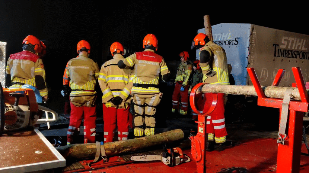 Naast zijn dagelijkse werk bij De Boombouw geeft John al jaren motorzaagcursussen aan de Veiligheidsregio IJsselland. Hij is zelf al 25 jaar brandweervrijwilliger en weet dat het bij een brandweer uitruk net zo vaak gaat om een omgewaaide bomen dan om een brand. Stormschade Dus alle brandweervrijwilligers moeten goed kunnen omgaan met een motorzaag en gevaarlijke situaties bij omgewaaide bomen goed kunnen inschatten en ook dan veilig te werk gaan. Bij alle korpsen van Veiligheidsregio IJsselland maken ze daarom dankbaar gebruik van zijn jarenlange kennis door hem in te schakelen bij het geven van deze cursussen.